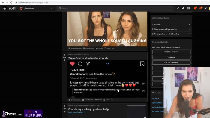 Andrea Botez, 22, is a Canadian chess prodigy and internet sensation. Born on April 6, 2002, in Vancouver, Canada, she's a streamer on Twitch who shares her nipslip and underboob moves while playing chess. Her remixes of techno tracks are popular among fans. She frequently posts nudes on social media, showcasing her body. She's now a well-known chess player with over 12 million followers on TikTok, where she shares videos of her chess matches, body shots, and behind-the-scenes content. Her sister Alexandra Botez is also a skilled chess player. Nude twitch girl itsandreabotez twitch nip slips on live streams latest leaks. The latest leaks of sexy twitch model andrea botez is undressing her rear on girl pictures and bikini premium content leaks from from June 2025 watch for free on bitchesgirls.com. Thot itsandreabotez gonewild. Andrea botez sex official video. Do you know what is real name of itsandreabotez?. She is definetly older than 18, but do you know what is andrea botez age?