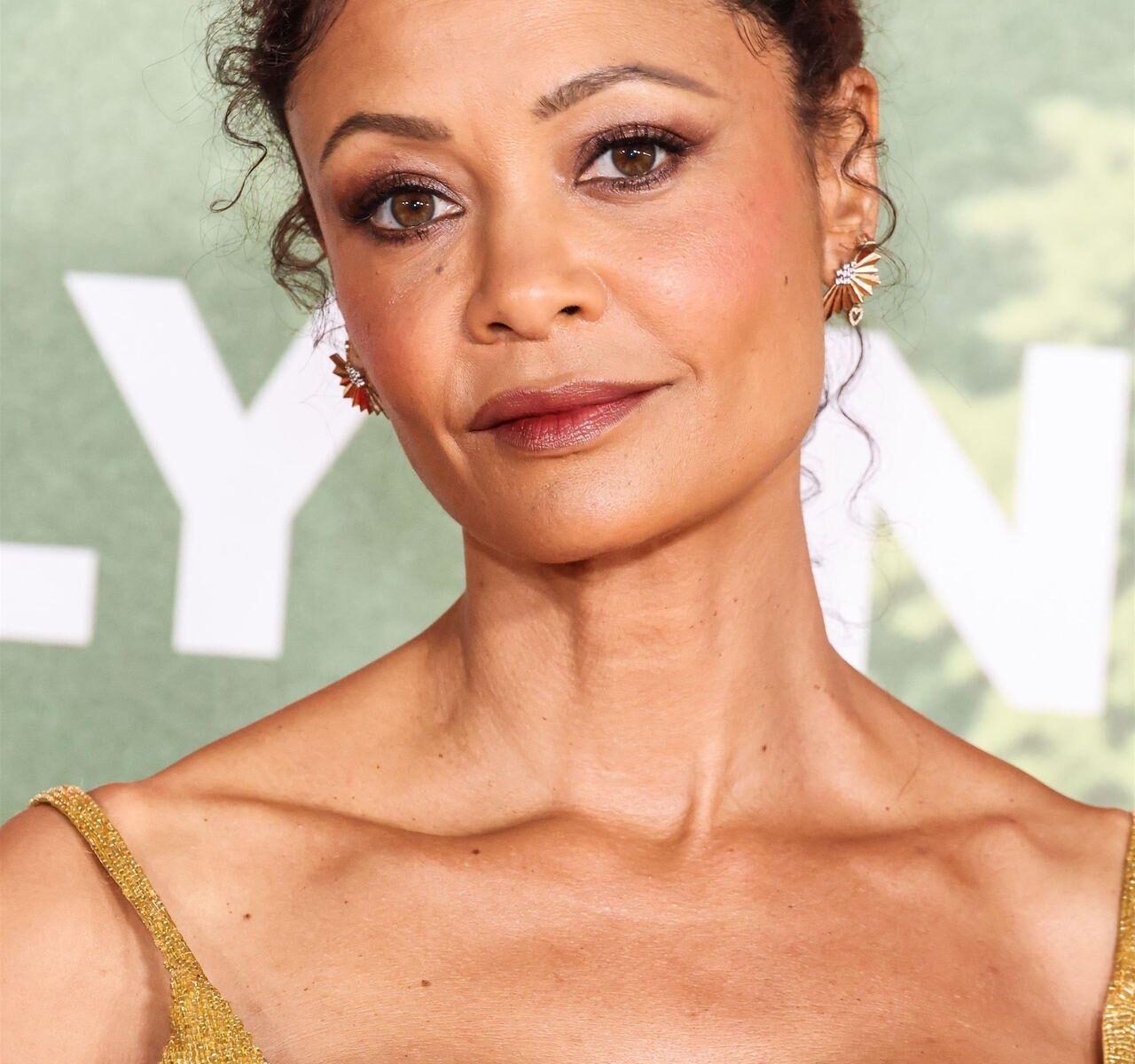 Thandie Newton (53) stuns in a golden dress at the “Anaconda” premiere at the United Theater on Broadway in Los Angeles. Check out her stunning red carpet photos below.